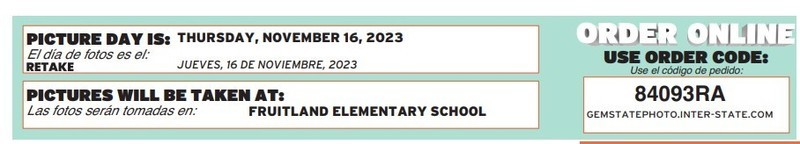 Fruitland Elementary will be having picture retake day on Thursday, November 16th.
