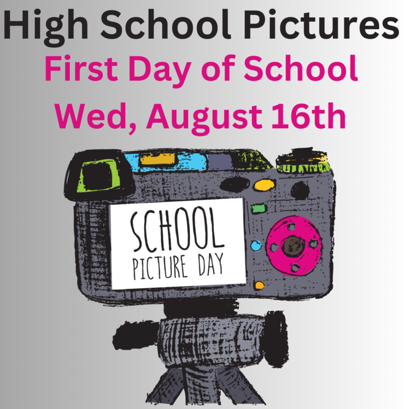 High School Pictures will be taken on the first day of school, Wednesday, August 16th!