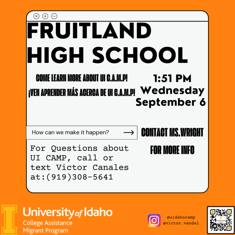 University of Idaho will be giving a presentation Wednesday, Sept. 6th at 1:51pm in the library about CAMP (College Assistance Migrant Program) that they offer.